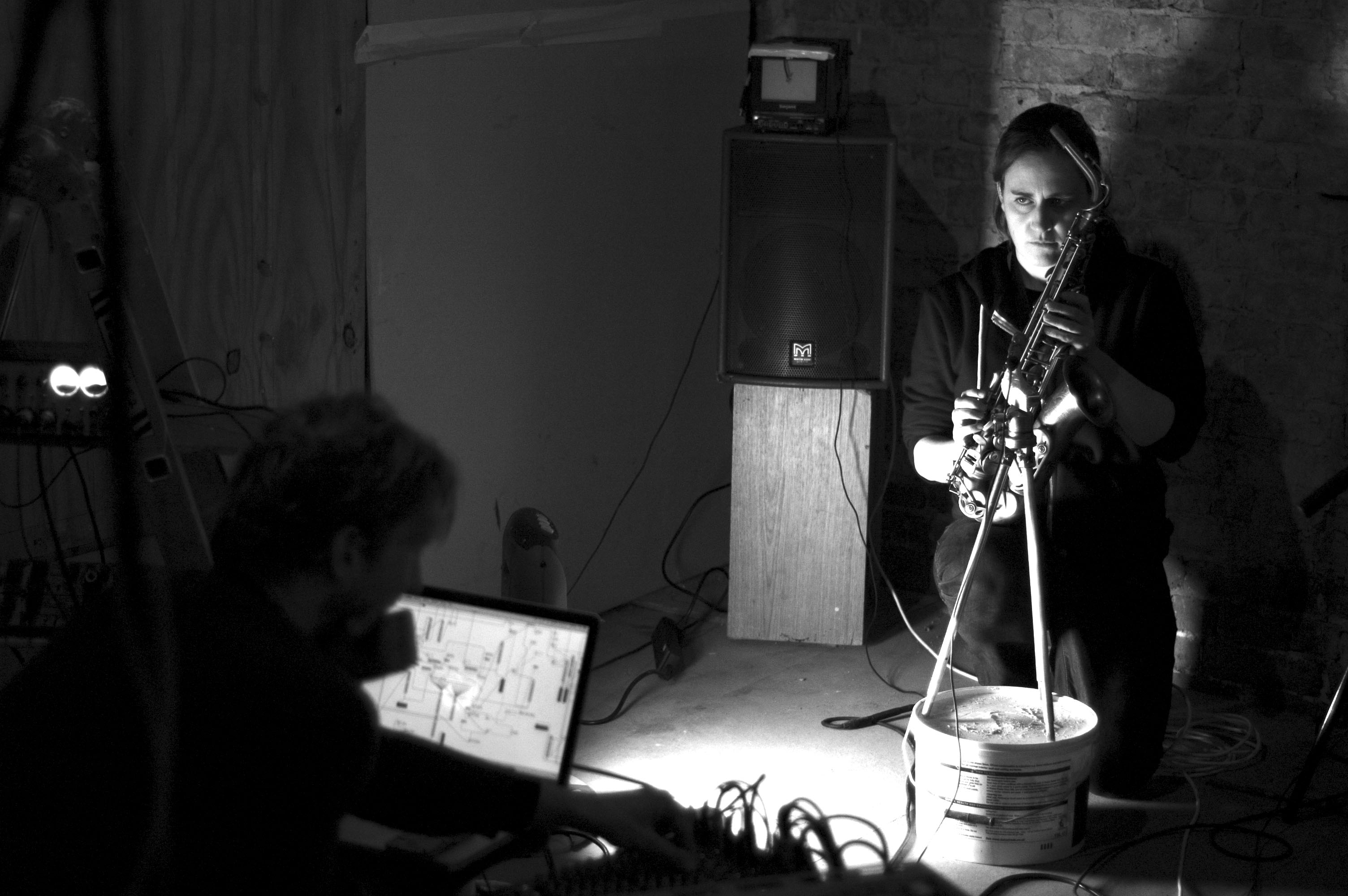 Deemer – an experimental duo which blurs the boundaries between sound art, electronics and improvisation – had a great recording session last week in a space we’ve been using to rehearse since the beginning of September. The ‘Jamestown Road Sessions’ will be released in 2015 as audio/visual document of our explorations.